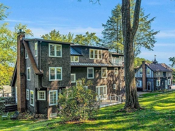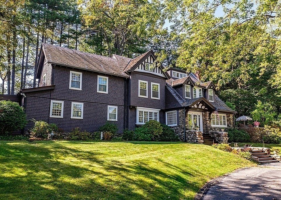 Designed by the famous architect Oscar Thayer, the Milton Cushing house has a stunning curb appeal that immediately welcomes you and draws you in. The pitched gable roofs, masonry, and decorative timbering accents and multi-pane windows creates a Storybook exterior. Inside this one-of-a-kind Tudor home, you will find 5 Bdms, 4.5 baths, 2 fireplaces, and over 3700 Sq. Ft. of living space. Beautiful wood floors can be found on all three levels, along with additional bonus rooms for offices or sitting rooms. Above the detached, 2 Car Garage is a 1 Bdm apartment with separate utilities and parking. Perfect for an in-law suite or rental income. The master suite has a master bathroom with a walk-in closet. Enjoy coffee in the morning in the sunroom off the living room. The basement is heated with a work area, cabinets, and plenty of storage space. 2 decks for entertaining guests, storage shed, & gorgeous landscaping. New Boiler, Updated Electric. A new roof is being installed on the Garage.