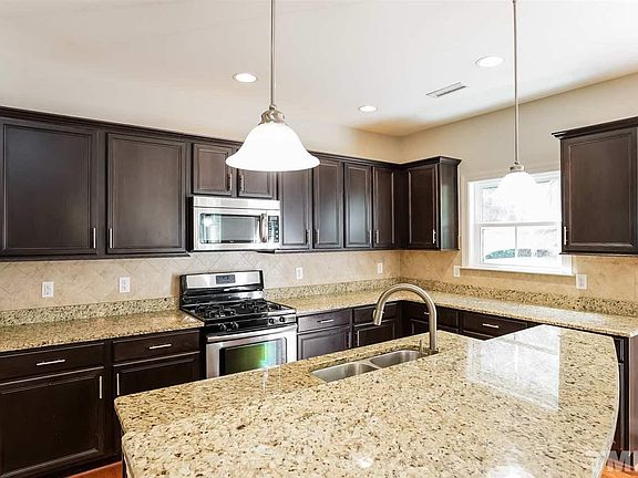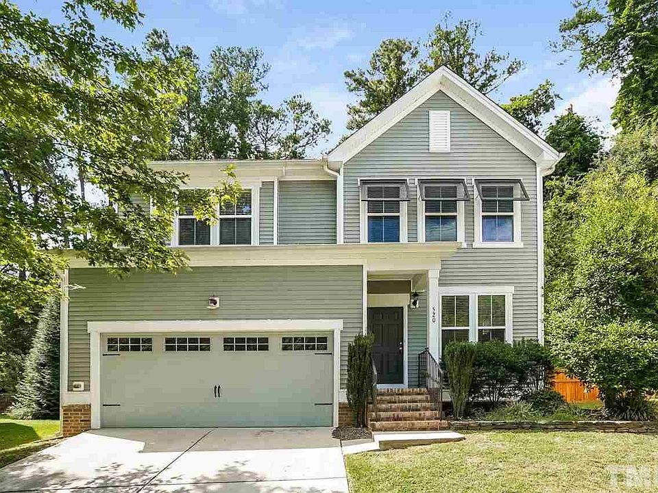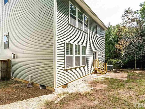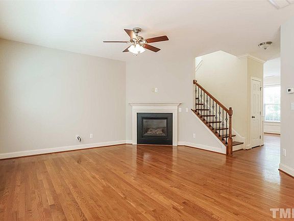 This Raleigh cul-de-sac home offers a loft, hardwood flooring, a fireplace, stainless steel appliances, a kitchen pantry, a walk-in closet in the master suite, a patio in the private backyard, and a two-car garage.