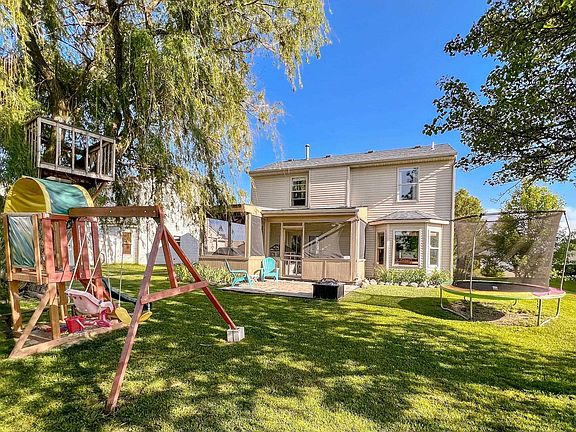 This practical and convenient home features 3 bedrooms, 1.5 baths, and a 2-car garage. The first floor includes a spacious gathering room and an adjacent eat-in kitchen with updated lighting, cabinet hardware, and a tile backsplash. The second floor contains 3 bedrooms and a laundry room. The home also features a lovely backyard with a screened-in porch, providing a perfect place to relax. Additionally, the garage has ample storage space with cabinets, countertop, and shelving. The home comes with kitchen and garage refrigerators, oven, microwave, dishwasher, and a 10x8 storage shed in the backyard. The house is conveniently located near the Pufferbelly Trail, providing easy access to all parts of town. Some recent improvements/upgrades including but not limited to: New hot water heater in 2020, fresh paint throughout, new flooring in 2020, new microwave, hvac system recently serviced and more! Schedule your showing today!