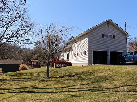 Up on the hill, you'll find this cozy 2 story home. Enjoy the spacious kitchen/dining area featuring oak shaker cabinets. Steps away are the living room and full bathroom. Upstairs are 2 large bedrooms with plenty of closet space. The 2 car garage, rear deck, shed and nice yard complete this charmer. BEING SOLD AS-IS.