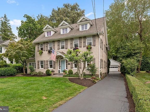 Walk to Wayne from this picture-perfect three-story colonial, tucked on a leafy side street and brimming with historic charm, sun-filled spaces and modern amenities. Set back from the road, the home’s well maintained and professionally landscaped yard make a fabulous first impression. Step inside the light-filled foyer and admire the intricate moldings, refined millwork, tasteful neutral paint and hardwood floors throughout. Just off the foyer, a warm and inviting family room with wood-burning fireplace connects to a skylit sunroom with slate flooring. French doors open to a cozy sitting room with custom built-ins and sweeping bay window overlooking the tree-lined backyard. Steps away the pristine eat-in kitchen shines with newer appliances, center island, double wall oven with warming drawer and updated flooring. A gracious dining room—ideal for gatherings large or small—and powder room complete this seamless first floor. Upstairs you’ll find hardwood floors throughout, plus an expansive primary suite with separate sitting room and ensuite full bath refreshed with newer flooring and double vanity. Two secondary bedrooms (one with a lounge area), a full hall bath and laundry closet sit just down the hall. The third floor delights with two additional bedrooms featuring new dormer windows and a full hallway bath with newer glass shower. The unfinished lower level offers ample storage and a secondary laundry space. Outside, enjoy a rear flagstone patio, flourishing greenspace and gardens and detached two-car garage. In addition, this home offers a new roof. Homes in this coveted community enjoy award-winning Radnor schools plus walkability to the Radnor Trail, Encke Park, two train stations and all the events, festivals, shops and restaurants of vibrant downtown Wayne. Don’t delay; seize this chance to own a turnkey Radnor gem today!