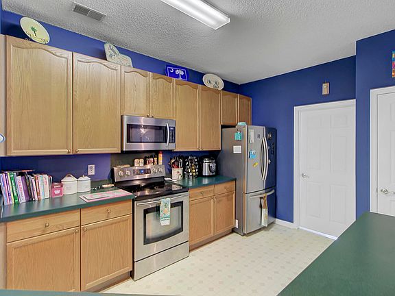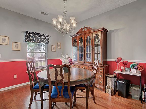 This home is the popular Riley Floor Plan with an open concept and plenty of natural lighting. Hardwood floors flow from the foyer to the separate dining room, and into the family room where you will find a wood burning fireplace. The eat-in kitchen is open to the family room for easy entertaining and leads to a separate laundry room on the other side. Sliding doors in kitchen area lead to a screened in patio and a fully fenced-in back yard. Lawn has irrigation. Master suite is upstairs with an attached bath that includes double vanities, a garden tub, a separate shower, and a closeted commode. Secondary bedrooms are a good size and share another full bath! Plenty of storage and an attached, 2 car garage complete this home. Make it yours today!