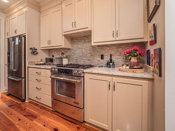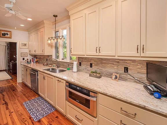 Charleston style 3 BR/2.5 Bath Privately Located in the center of Downtown, Historic Camden. Heart pine hardwood floors throughout. Formal living with fireplace, built-ins, and french doors. Renovated kitchen with granite counters, tiles backsplash, updated cabinets, stainless steel appliances, including gas range. Formal dining & living room, lower level living area & screened porch for more entertaining space.
