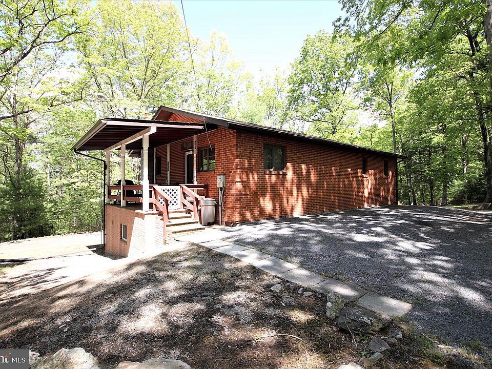 Hunter's Paradise! Adorable Brick Rancher nestled amongst nearly 16 beautiful and mostly wooded acres (being sold furnished!) - Perfect for a weekend getaway or year-round living - 3 Bedrooms, 2 Bathrooms, Kitchen w/island, Living Room & Dining Area, 3 nice sized Bedrooms and large Bathroom on the main level. Basement provides plenty of storage, laundry, and full Bathroom. One-car attached garage, covered Front Porch, large fire pit area. Nature and wildlife abound and the property boasts gorgeous mountain views!