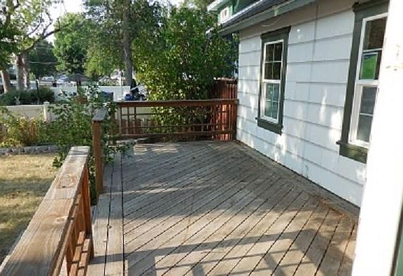 One level ranch style home with 1 bedroom, 1 bath, spacious living room, kitchen with eating area, a bonus room and laundry/mud room. This home is located on a corner lot and has a front deck, covered patio in back, fenced backyard, picket fenced front yard and a double detached garage off the alley.
