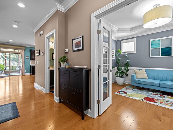 Experience the beauty of mature landscaping with this meticulously maintained home. The property features a stunning perennial shade garden with Hydrangeas, Hostas, Gardenias, a Kwanzan cherry tree, and more. Surrounding the backyard are large Spruce and a variety of evergreen trees, creating a lush and private oasis. Enjoy entertaining or relaxing on the expanded deck or screened porch, all while soaking in views of the lush green grass and beautifully landscaped gardens. Inside, the first floor boasts elegant hardwood floors, a versatile dining room with French doors, and a gourmet kitchen with a large floating island, stainless steel appliances, and a double oven. The family room, with its gas fireplace and custom built-in shelving, is both cozy and stylish, enhanced by custom wood blinds, crown molding, and designer lighting. Upstairs, new carpet adds freshness to the open loft and two spacious guest bedrooms. The guest bathroom features dual vanity sinks with a separate toilet and shower area for convenience. The Primary suite offers serene views of the backyard, a tray ceiling, walk-in closet, and designer wall-mounted lights. The en-suite bathroom includes a glass shower and separate soaking tub, providing a luxurious retreat. Discover the ideal solution for storing your holiday decorations, family memorabilia, and more with the additional storage space! This sealed and conditioned crawl space protects your treasured items, keeping them safe throughout the year. This home is a must-see for anyone who appreciates exquisite landscaping and stylish living.