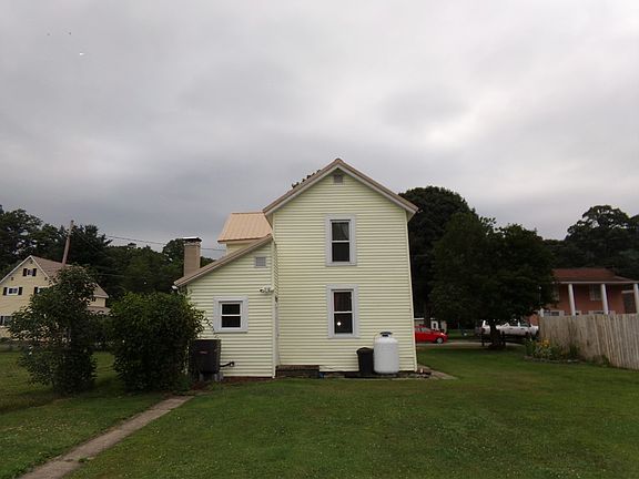 A quiet neighborhood is the location of this two-story home with many updates. There are 3 bedrooms, 1 bath, an updated kitchen and remodeled living room. The home has oil heat and a heat pump for central air conditioning.  (Two of the bedrooms do not have heating/cooling vents.)  The laundry hook-ups are conveniently located in the first floor bathroom. Nice, covered front porch.