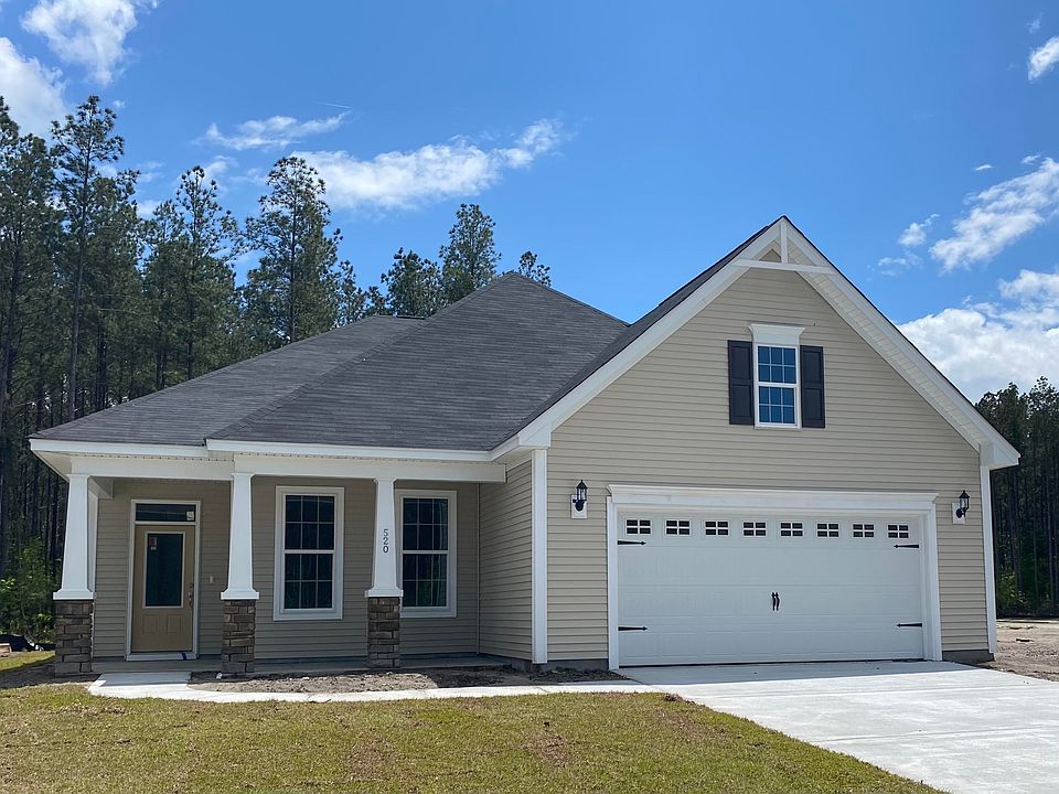 Ready May! Welcome home to the Chadwick! The Chadwick is a one-story home with a finished bonus room that includes a loft, a bedroom, and a full bath! When you first pull up, you'll notice the front porch with three craftsman style columns wrapped in stone. As you walk through the front door, the first thing that you'll notice is the elegant formal dining room with a coffered ceiling. Six-feet Augusta Highlight Oak luxury vinyl plank flooring can be found throughout all of the common areas on the first floor, as well as in the primary bedroom. The kitchen has Glacier Gray cabinets, Frosty Carina quartz countertops, and a white tile backsplash! Enjoy your morning coffee or favorite afternoon beverage on the rear covered porch which backs up to eighteen acres of preserved freshwater wetlands