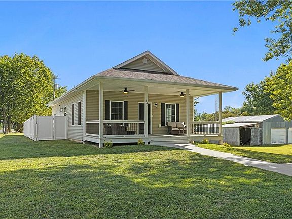 Like new home! This charming ranch-style home was built in 2021 so HVAC, water heater, mechanicals, and roof are all still in excellent condition. The current owners added various upgrades such as the white vinyl fencing, tornado shelter, custom wood blinds, large storage shed with solar lights, smart light switches, automatic wired pathway lighting, security system, new front door, new laundry door, and LED lighting throughout.The kitchen features custom cabinets, seating space, granite countertops, pantry closet, and appliances. Laundry room is conveniently located off the kitchen. The living room area is nice and open, flowing nicely into the kitchen area. Neutral colors, vinyl flooring, and carpet throughout. Nice sized primary suite with a beautifully updated bathroom. All electric home with 9 foot ceilings, attic door was insulated to improve heating and cooling! Large covered front porch with 2 ceiling fans, perfect to relax. Nice sized yard with back patio area and the huge storm shelter in the backyard. You don't want to miss this one, check it out!