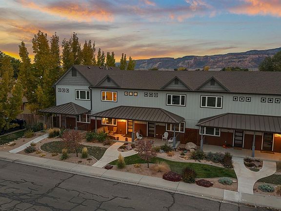520 E Harrison Ave offers a rare opportunity to live in a beautifully crafted, centrally located, zero-energy townhouse with unique backyard space and a large garage. This 2-bedroom, 3-bathroom, 2-story home features high-end finishes and thoughtful details that elevate everyday living. The open main level, with ¾” hardwood oak floors, flows from the living area to a dining area, to a spacious kitchen with a large island and breakfast area, out to the covered back porch and backyard. Upstairs, there are two large, bright, carpeted bedrooms with tiled bathrooms, each with expansive walk-in closets. A conveniently located laundry area with a solar tube provides private separation between the dual primary suites. Custom maple cabinets and quartz countertops are featured throughout. All-electric living is powered by a 7,500-watt owned solar system mounted on a long-life metal garage roof, covering all electricity needs (with a minimal grid connection charge). The high-efficiency Fujitsu dual-zone heat-pump HVAC system offers year-round comfort, while the home’s 2x6 noise-proof construction and low-maintenance metal siding provide efficiency, quiet, and minimal upkeep. The oversized, detached two-car garage offers ample storage space and includes a fully insulated & finished attic bonus room with room heat and AC—perfect for a home office, fitness space, or creative retreat. A xeriscaped 600+ sq ft backyard with irrigation water for plants and a hot tub pad with a pergola frame complete this outdoor sanctuary. Located just steps from a beautiful park and only blocks from downtown Fruita, this home offers easy access to shopping, restaurants & breweries, hiking, biking, and the vibrant local community. With the HOA covering front landscaping and common area upkeep, this home provides the perfect balance of modern living, easy luxury, and low cost. It is a home you'll be honored to call your own!
