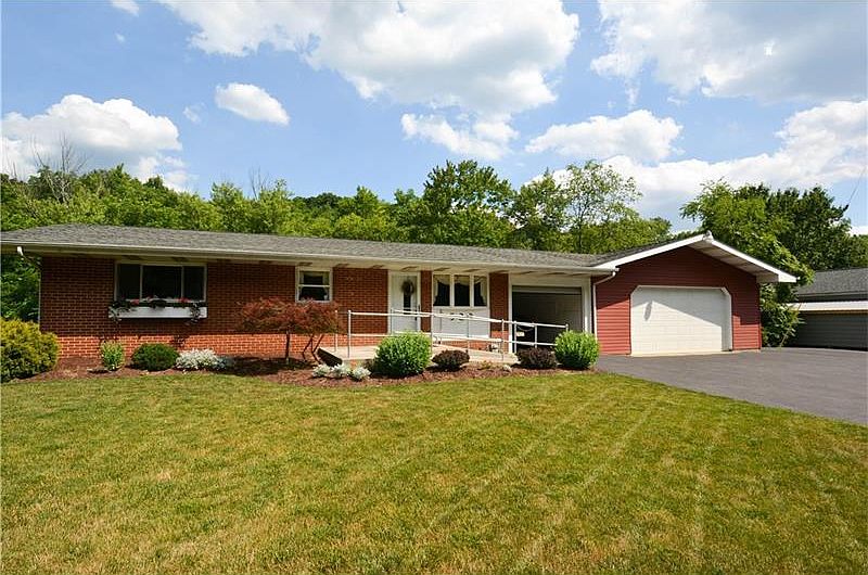 A beautifully renovated, three bedroom brick ranch with attached breezeway and oversized double car garage, this home is situated on the front third of a half-acre lot just east of Evans City, along PA Route 68 (aka East Main Street). The open floor plan with hardwood floors, gives the great room the ability to accommodate large furniture and a formal dining area. The great room is also open to the updated kitchen which offers newer wooden cabinets, ceramic flooring and newer appliances, as well as access to the oversized wooden deck overlooking rear yard. The full bath has been totally restored with glass block window for added brightness and ceramic tile floors and tub/shower surround. There is a walk-out lower level apartment and storage, which can be converted to a game room with full bath and kitchenette. The "mechanicals" are young as well, and feature a high efficiency gas furnace, air conditioning and updated electrical system. Landscaped with tie walls, river rocks and custom designed stairway, the lot backs up to wooded area but offers an oversized lawn for games and entertainment. There is generous parking area for multiple vehicles. The location is the bonus with easy access to shopping and interstate roadways. This property can be used as a residential home, multi family unit or with township permission, again used as a commercial business. Call for more details.