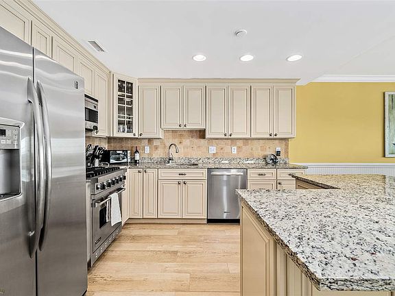 You will find this pristine Ocean Front 3 bedroom Den (can be used as a 4th bedroom) Private Residence at the Stockton Beach House Condominiums located in Wildwood Crest. This 3rd floor ocean front residence features many upgrades such as custom kitchen cabinets, tile backsplash, upgraded Stainless Steel appliances, Viking range, Granite Countertops, Center Island bar, recessed lighting, custom painted walls, custom tile flooring in kitchen, living and dining areas along with hardwood flooring throughout the hallway and foyer. Being sold furnished (professionally decorated) and ready for immediate occupancy, this fabulous (never rented) Oceanfront Jewel has spectacular direct ocean views from the living room, dining and kitchen areas, not to mention all the bedroom windows have ocean views. Large Deck (comes complete with upgraded patio furniture) has plenty of room for entertaining.