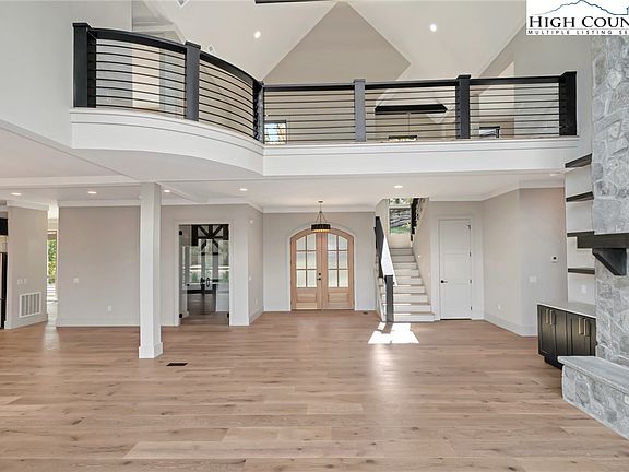 NEW CONSTRUCTION EXQUSITE HOME IN BANNER ELK. Located in the Elk Creek at Banner Elk Community with 180 degree Mountain Views!. This Mountain Modern Home features over 4,500 square feet of living space on 2 floors with 4 bedrooms and 4-1/2 baths including a large living space above the garage accessed from within the home. White Oak floors throughout. Three gas vented fireplaces including a floor to ceiling stone one in the living room, Primary bedroom and one on the large partially covered outside deck. Main level living with Primary bedroom, living room, dining room, kitchen & laundry on the 1st floor. ONLY 2 STEPS IN. Large Primary bedroom with a fireplace, huge walk in closet and spacious bath with double vanity & walk-in shower. The Great room features tall ceilings, a floor to ceiling stone fireplace and a wall of windows to take in the magnificent view. The gourmet kitchen features a 48” GE Cafe Stainless Steel Dual Fuel Gas Range with Double Ovens, GE Cafe Microwave with Convection, Cafe French Door Refrigerator, Cafe Dishwasher & large walk in pantry. Custom cabinets with Champagne Bronze hardware and a HUGE 9 foot island. Glass enclosed Wine room/bar. Enjoy the mountain air on your covered deck with a fireplace while gazing at Beech Mountain and Hanging Rock. Upstairs you will find an oversized loft, office area and 2 spacious en-suite bedrooms. The 4th bedroom is a 700+ s.f. studio over the garage set up for a bed, living area, mini kitchen and full bath with large walk-in shower. Mini Split provides AC & Heat. Flat paved circular driveway and an oversized 2 car garage with workshop area. Full Laundry room with sink. Hard Wood floors throughout. In Town location for easy access to shops, restaurants, supermarkets, ski slopes and more. You will not find a better value for a new large upscale home in Banner Elk priced at under $400 per square foot. Quick drive to Downtown Banner Elk, Sugar Mountain, shops, restaurants, 2 supermarkets & pharmacies and more. Natural gas, underground utilities, Town water and sewer and high speed internet.