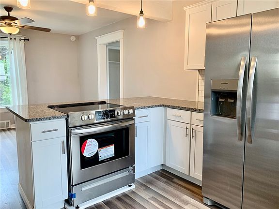 Two story single family home has been completely remodeled!!! All new windows, appliances, new tile and vinyl flooring, paint throughout, new tile and granite topped vanities in both bathrooms. Granite countertops in the kitchen, first floor laundry.