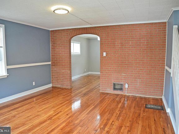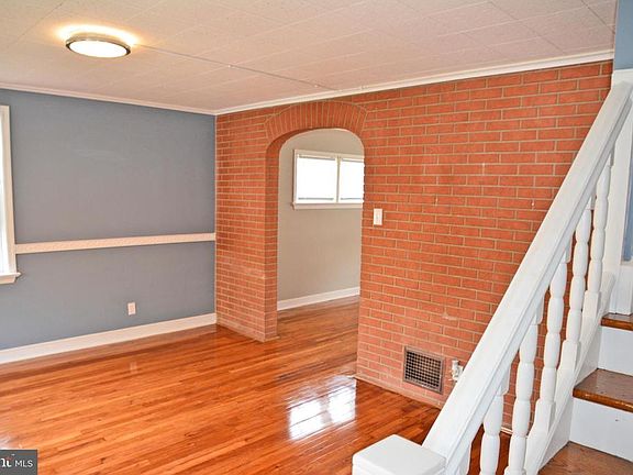 Very nicely refurbished end-of row all brick townhome. Refinished wood floors throughout, large welcoming Living Room, Formal Dining plus breakfast bar with pendant lights and pass through to kitchen. The kitchen features granite counters, glass tile backsplash, stainless steel appliances (all included), and gas range with built-in microwave. Upstairs, there's 3 bedrooms and a bath, all with refinished flooring, wood and tile. The basement is finished and has an additional 440 square feet of living including recreation area, half bath and laundry. Replacement windows throughout, economical gas heat plus cool central air as well (both new in 2015). Enjoy the low maintenance outside from the comfort of your shaded back porch, a nice front and side yard plus off street parking for 2 or 3 cars and a shed in the fenced backyard. Quick possession possible!