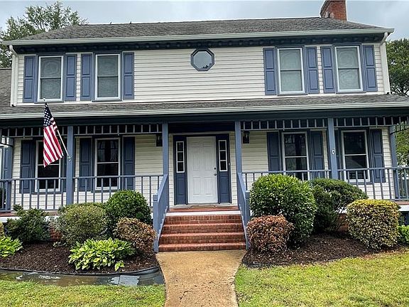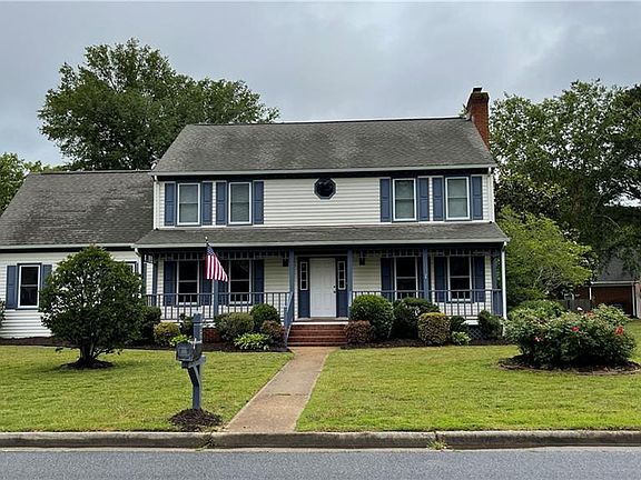 Lovely 5 bedroom (5th is bonus room with closet), 2.5 bath traditional on large lot in Great Bridge School district. Inviting full front porch, large fenced backyard with deck. Formal living and dining rooms. Kitchen has granite countertops and breakfast bar, opens to huge breakfast room with bay window, pantry, built-in desk and door to deck. New LVP in Dining Room, Hall and 1/2 bath. Sunken family room has masonry fireplace, built-in cabinetry & hardwood floors. Gas logs "as is" never used by sellers. Primary bedroom is spacious with tray ceiling, walk-in closet and en-suite bathroom. Painted crown and chair rail moldings. 2 zone HVAC. Huge utility room off kitchen leads to 2 car side loading garage. Fully encapsulated crawl space with sump pump drainage system, dehumidifier and hygrometer. Architectural shingle roof. Storage shed. Make this house your home!