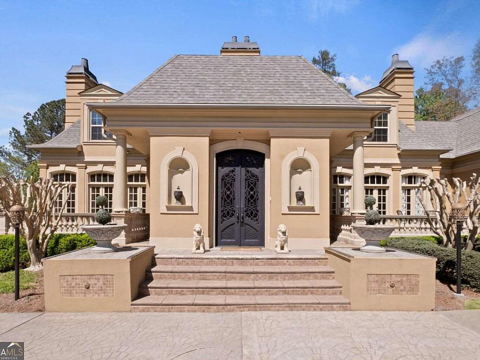 Gorgeous! Perfect for entertaining. Oversized 1 acre lot in Thornhill swim/tennis community. Nearby amenities include Atlanta Athletic Club, Wesleyan School, The Forum, in addition to great restaurants and shopping. Primary suite on the main with inlaid hardwood floors, dual vanity, soaking tub, large shower with frameless glass door, walk-in closets. Hand painted accents throughout home, extra details, built-ins, marble floors in Great Room and Living Room. Eat-in kitchen with fireplace, breakfast bar, custom cabinets, quartz counters, and stainless appliances. Large Great room with vaulted ceilings, FP, access to deck, and floor-to-ceiling windows to allow for plenty of natural light! The upper-level features 4 spacious bedrooms, perfect for guests and large families. 4 bathrooms, with custom tile, glass shower doors, cultured marble counters, and common area upstairs that makes a perfect game room/playroom. The lower level offers a daylight finished basement. Basement features wine cellar, home gym, sauna, family room, media room, storage, kitchen, and bathrooms. Perfect for in-law suite, teen suite, or home office with private terrace entrance. Cul-de-sac lot with mature trees, professional landscape, stunning pool with hot tub, fence, retaining walls, patio, large deck for grilling and hosting guests, outdoor fireplace. This is a perfect place to unwind or celebrate with family and friends! Come make this home yours! You will love the space, location, and community!