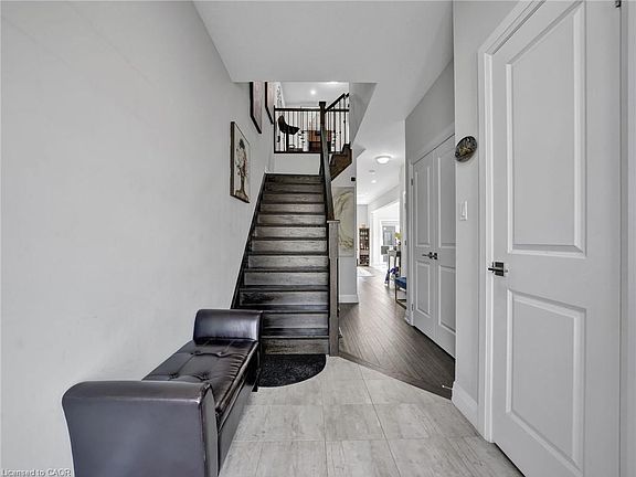 Welcome to this Beautiful 2 year old FREEHOLD townhouse in the in the vibrant Echo Place neighborhood. This 3 bedrooms and 2.5 bath spacious turn the budding family who want to move in and have very little to do. The luxurious open concept main floor with soaring 9ft ceilings come equipped with a 2-piece bathroom, sleek tiling and elegant dark hardwood flooring . A ton of natural light floods the beautiful white kitchen. Plenty of cabinet space, stainless steel appliances and island with extra counter space to set the tone for a modernized feel. Seamlessly transitioning in the bright living room area with oversized window and pot lights thorough out. Adjacent to the kitchen in the dining area where sliding glass doors that give you quick access to the backyard for BBQ and guest entertainment purposes. The immaculate oakwood wood staircase with black iron balusters leads you up to the second level which boats a flex space great for gaming or an office. The large master bedroom has a walk in closet and an ensuite with a glass shower. A 4 piece bathroom and two more good size rooms complete the second floor. The basement is unfinished with a laundry area, ready for you to expand your living space and customize it with your own vision for the future. Minutes to Wayne Gretzky pkwy where you will find highway access to the 403 and all your amenities needed. Shopping district of Brantford including Lynden Park Mall, Canadian Tire, Home Depot and the new Costco! Take advantage of the abundance of trials, Wayne Gretzky sports complex, New YMCA, the hospital nearby, this super safe, quiet Brantford neighborhood is one of my favorites and a dream for the family looking for convenience and a newly built home. Book your showing today. don’t’ miss out on this amazing opportunity!