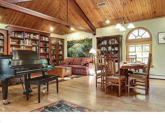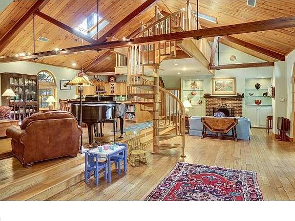 Charming enlarged Carriage House (circa 1900) with attached Dutch Colonial, meticulously restored by previous owner with exceptional architectural details, and further updated and expanded during its current ownership. Don't be fooled by the unpretentious front. This is truly a "come to the secret garden" house. Walk into the beautiful sunny ceramic tiled foyer with vaulted ceiling and hall closet in addition to an in-law suite to your right and large 2 car garage with 50A outlet installed for attaching an electric car charger. The suite has its own entrance and includes a full bath, mini kitchen with microwave, closets and living area that opens directly out onto a patio and the picturesque grounds. The foyer opens to a truly captivating Great Room with a soaring 18' ceiling, an abundance of natural light, original beams and trusses, knotty pine ceilings, custom built cabinetry and lathe and plaster walls with a modern gourmet kitchen updated by current owner with granite countertops, new backsplash, an abundance of custom wood cabinetry, chefs stove (with outside exhaust), and a granite topped eating bar. The Great Room also includes a wood burning fireplace. Overlooking the Great Room and accessed by a spiral staircase (or from the second floor of the Dutch Colonial portion of the house) is a large loft area currently used as an office. The first level of the Dutch Colonial portion of the house boasts a wonderful master suite with master bath, sitting room and an abundance of closets. The bath has been updated with new sink, high/low toilet, and new hardware on shower. Also on the first level is a laundry room and a mudroom/potting room that exits out to the patio and grounds. The second floor of the Dutch colonial wing of the house includes 3 additional bedrooms, one with en-suite bathroom with shower, sink and toilet, and a hall bath which was gutted and rebuilt approx 2 years ago. All this on a beautiful sloping .66 acres with stately trees, lovely gardens,