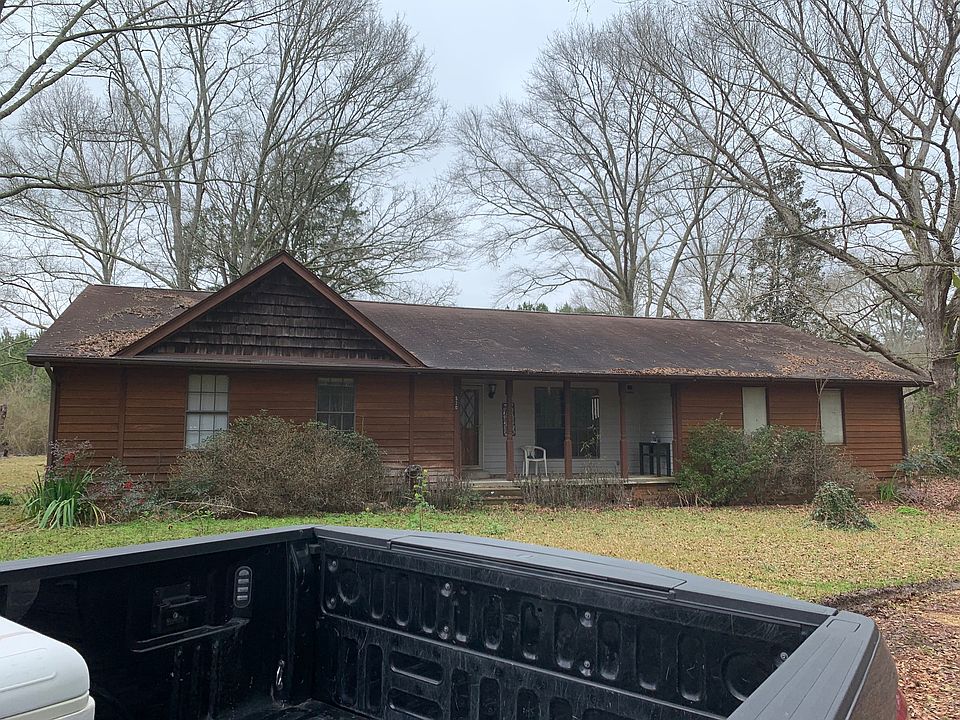 Approximately 2,000 sq ft, attached garage, storm shelter, conventional foundation, and covered back porch. Home sits on 55+/- acres that contains a mixture of hardwood and pine. Home needs some repair. Home is listed well below a 2018 appraisal and is negotiable. Seller reserves the right to retain mineral rights.