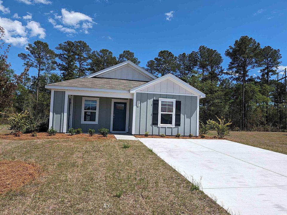 Welcome to our newest community located off Highway 90 with easy access to numerous restaurants, shopping centers, attractions, golf courses, and beaches. This one-story home offers three bedrooms, two bath with an open living and kitchen area, perfect for any stage of life. The owner's suite is separate from the guest bedrooms with a private bath, 5 ft shower, double vanity and walk in closet. You will enjoy the coastal weather on the covered front porch. Features include stainless appliances, granite countertops in the kitchen, blinds on all standard windows and outdoor storage attached to the front porch.                  This is America's Smart Home! Each of our homes comes with an industry leading smart home technology package that will allow you to control the thermostat, front door light and lock, and video doorbell from your smartphone or with voice commands to Alexa.  *Photos are of a similar Lewis home.  (Home and community information, including pricing, included features, terms, availability and amenities, are subject to change prior to sale at any time without notice or obligation. Square footages are approximate. Pictures, photographs, colors, features, and sizes are for illustration purposes only and will vary from the homes as built. Equal housing opportunity builder.)