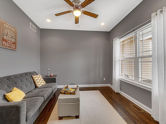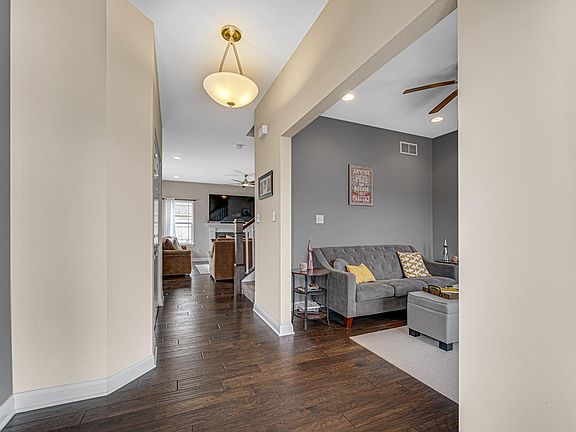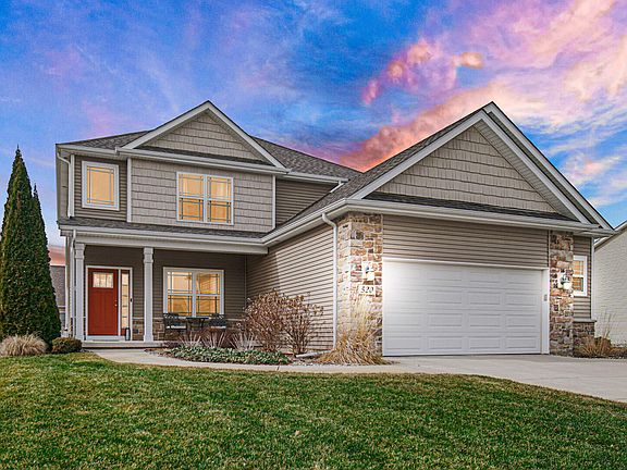 Imagine moving into a home that requires nothing but your furniture! This impeccably maintained, 3 bedroom, 2.5 bath beauty is a true gem. As you are looking at the photos, you may notice the little "socks" on all of the furniture. Some may call it excessive, but you won't find any scratches on these beautiful floors. However, the cleanliness isn't reserved for the floors, as the entire home is immaculate. Enter the covered porch into the foyer and you'll find a sitting room/office on the quieter side of the home. Down the hall you'll move into the living room with gas fireplace and custom surround, that opens into the dining room and kitchen. The kitchen with custom cabinetry, island with seating, deep pantry, granite tops, glass backsplash and all stainless appliances. Off kitchen is a 1/2 bath and laundry room with custom adjustable organizer. Upstairs, the primary ensuite, large enough to add a couch, has a tiled shower, double sinks and a large walk in closet. The closet is so big that they added an office to the space. The loft upstairs is a great area for tv, office, playroom, you decide! 2 additional bedrooms and a full bath round out the upstairs. The garage has an additional 4' bump out for storage and a plug for your electric vehicle or RV. Out back, the newer paver patio, wildflower habitat (which benefits soil health and erosion) and arborvitae natural fence for privacy, all collectively add to a peaceful setting that everyone can enjoy. Loads of storage. Full unfinished basement plumbed for bath. Walking distance to park and pond fishing. There is so much more to this home, so please download feature sheet for all features and updates.