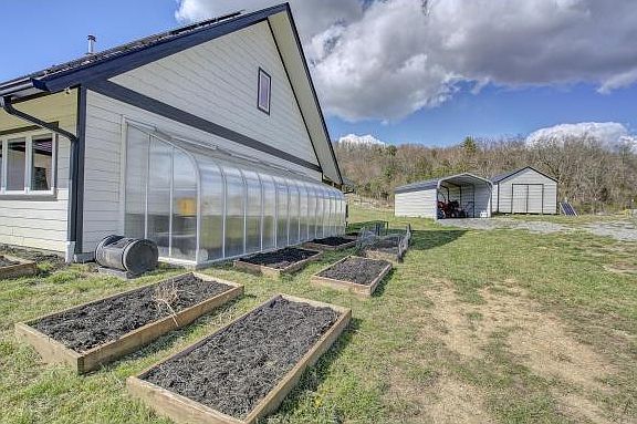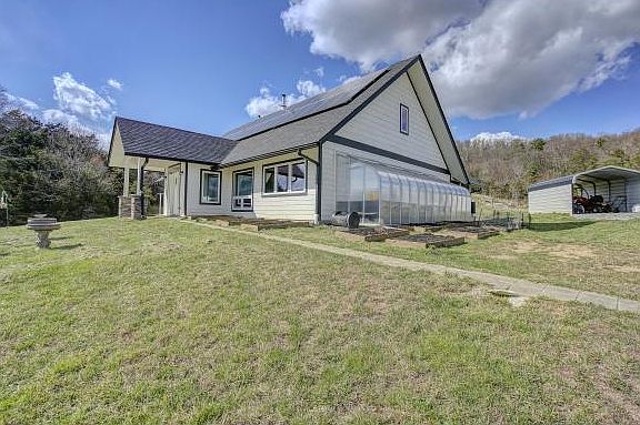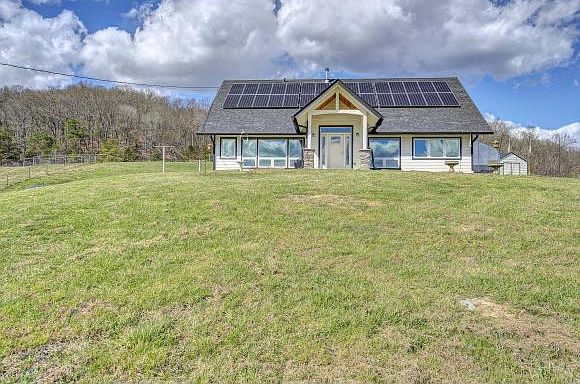 A Homesteader’s Dream. Enjoy self-sufficiency and green living at its finest. This beautiful, functional 3 bedroom, 2 bath passive and active solar home is nested on 20.66 acres. Private and quiet yet within 15 minutes to the city of NASCAR-famous Bristol, TN. The home has 2510 square feet with all living space on the lower level. The upstairs is a large, carpeted, open recreation room. The home boasts gorgeous, panoramic mountain views and luxury upgrades like granite in the kitchen and all baths. There are several green features including roof-top solar panels, battery back-up system, soapstone woodstove, cisterns, rain barrels, composters, triple pane gas-filled windows, ERV’s, energy efficient appliances, Carrier mini-split system, and blackout curtains. The home’s Logix ICF concrete construction, open floor plan, polished concrete floors, trombe wall, and southern facing windows absorb sunlight and maintain warmth in the winter. The 31 acres features complete exterior and interior fencing for paddocks and rotational grazing, with each paddock sharing its own livestock water tank. There is a spring-fed pond, a large classic metal barn, a large metal livestock shelter complete with jugs and milking stalls, a metal shed, a metal carport, and a partially-covered run great for chickens. The shelter and shed have electricity. Enjoy gardening with 16 raised beds, a greenhouse, an orchard, and a medicinal herb garden. Relax and enjoy life knowing you’re making a difference and that you can handle whatever the world may throw at you.