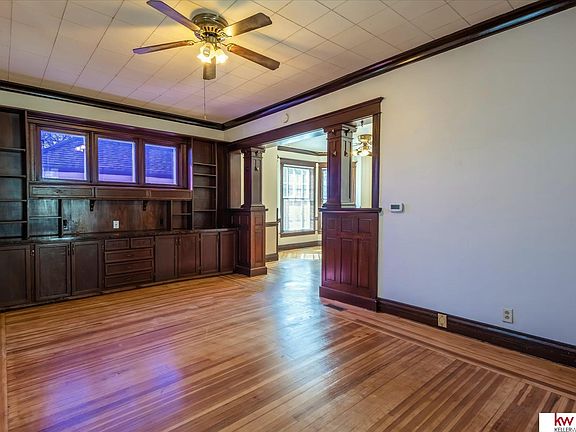 Welcome to this charming 2-bedroom home nestled in the heart of Council Bluffs, Iowa. As you step inside, the warm embrace of beautiful wood flooring throughout the residence creates a cozy and inviting atmosphere. The meticulously maintained interior showcases a perfect blend of classic charm and modern convenience. Several rooms feature stunning built-in shelving, adding both character and functionality to the space. This thoughtful detail not only enhances the aesthetic appeal but also provides convenient storage solutions for your personal belongings. The generously sized front porch welcomes you with open arms, providing an ideal space to relax and enjoy the delightful Iowa weather. Imagine sipping your morning coffee or unwinding in the evening, surrounded by the tranquility of this welcoming outdoor space. The home also has a detached two car garage with an attached workshop for your hobbies and storage needs. Don't miss the opportunity to make this charming home yours!