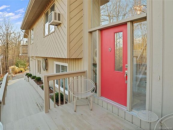 Mid-century modern style sanctuary in the woods. A sophisticated home on a spectacular hill! Unique, light-filled 4 BR retreat surrounded by 3.68 acres of stunning, secluded woodland. Both a gracious family home & serene getaway in tranquil, private setting w/ multiple decks, vaulted ceilings, & skylights. Versatile floorpan allows for multiple zoom-room, work/study-from-home locations. Before entering the front door, stop and enjoy the beautiful wooded view, then be welcomed by a dramatic 2-story entry w/ large clerestory window. The stunning front-to back great room has a vaulted ceiling, fireplace, & doors to both front & rear decks. Just off the open concept kitchen is the inviting DR which has a sliding door to lower deck. The main BR runs front to back and boasts another balcony, vaulted ceiling, walk-in-closet, & recently updated full bath. Two more good sized BR & a full bath complete this level. The lower level has a potential in-law thanks to the front-to-back family room w/ kitchenette and atrium door that leads to private seating area, (office being used as) 4th BR & full bath. The back yard features beautiful gardens & an extensive irrigation system which also waters front planters & along driveway. The multiple decks create 700+ sqft of exterior living space. 2,823 overall sqft includes 1,850 main level + 973 LL. Wired for generator. Outdoor shed. All this plus award winning schools & several nearby farm stands. *Please view interactive floor plan virtual tour*