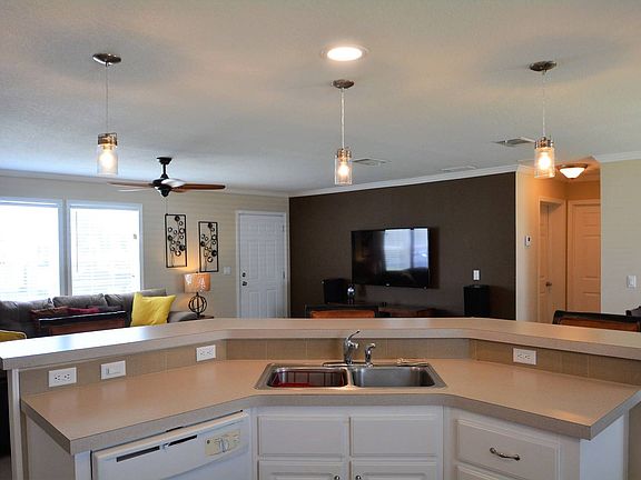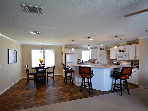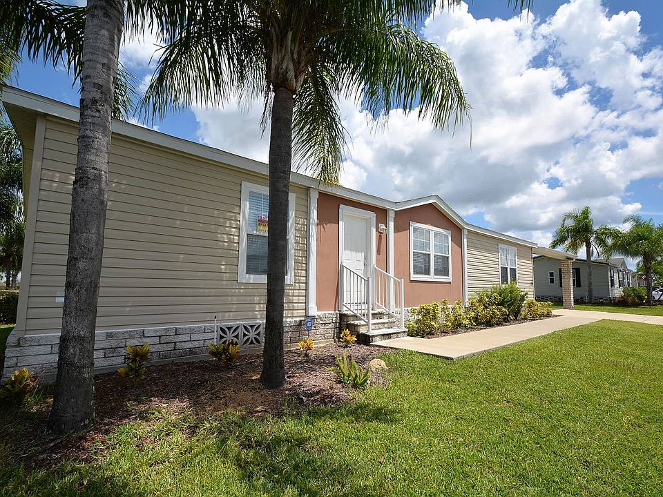 2016 JACOBSON 3 BEDROOM 2 BATH HOME IN FAMILY FRIENDLY ALL-AGE COMMUNITY OF PALM KEY IN DAVENPORT, FL. This home is an absolute must-see!! Located on a corner lot, with a double carport providing parking for up to 4 cars. There is a large screen lanai at the rear of the home. Features of this home include a wide-open floor plan with an all-white kitchen with center island. All white appliances blend nicely with the crisp white cabinets. The laundry area is in the hallway by the backdoor that leads to the screened lanai. The flooring in the kitchen is waterproof wood plank linoleum. Lovely blends of paint on the drywall throughout really pulls it together. This split-plan on one end has the master bedroom and en-suite bath with a large garden tub, full-size step-in shower, and large walk-in closet. All three bedrooms and the living room have carpet, walk-in closets, and ceiling fans. Another great feature is the awesome tilt-in windows for easy cleaning. Palm Key is located close to Disney, Sea World, Universal, and the new Margaritaville. There is plenty to do both inside the park (heated pool, lending library, playground, game room) and outside the community. The current monthly lot rent is $800 and includes the use of the park amenities and trash/recycling. Call today to schedule a tour of this beautiful home. We can do paperwork remotely if you are out of the area. All appliances and patio furniture are included.