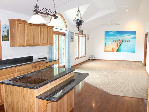 - AMENITIES: Main Floor Laundry, Deck Open, Eat-In Kitchen, Cable Available, Main Level Bedroom Suite, Ceilings-Vaulted, Porch Screened, Tub and Separate Shower, Utility Sink, Countertops-Stone, Kitchen Island, Deck on Waterfront, Firepit, Jet/Garden Tub, Split Br Floor Plan