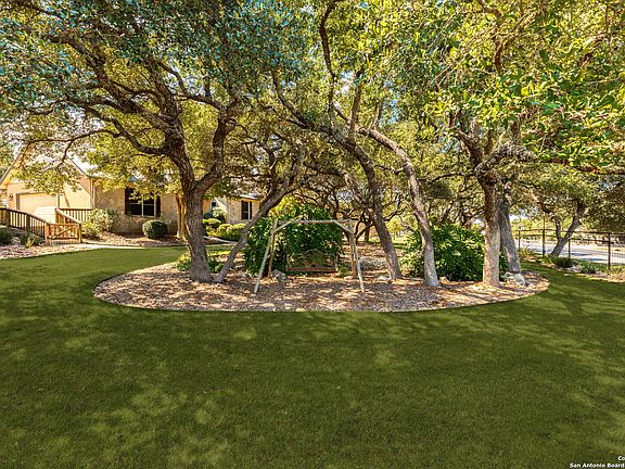 Located in the gated Lantana Ridge community, this beautifully maintained 3,081 SF single-story home stands out with its incredible 24'x36' air-conditioned 3-stall shop and stunning, expansive landscaping. Designed for car enthusiasts or hobbyists, the shop complements three total garage spaces. Outdoor living shines with mature trees, xeriscape design, a dedicated garden shed, and a serene deck perfect for entertaining or relaxing under the Hill Country sky. Inside, the 3-bedroom, 3.5-bath layout features ensuite baths and walk-in closets for every bedroom, including one fully accessible suite with walk-in shower and grab bars. The split primary suite offers privacy, while soaring ceilings, open flow, and abundant storage create an inviting sense of space. Thoughtful upgrades include a durable metal roof, gutters with leaf guards, solar screens, water softener, and a drip irrigation system-providing efficiency, comfort, and low-maintenance living. Set on a desirable corner lot with sweeping Hill Country views, this home delivers craftsmanship, comfort, and character. Explore the INTERACTIVE 3-D Virtual Tour today.