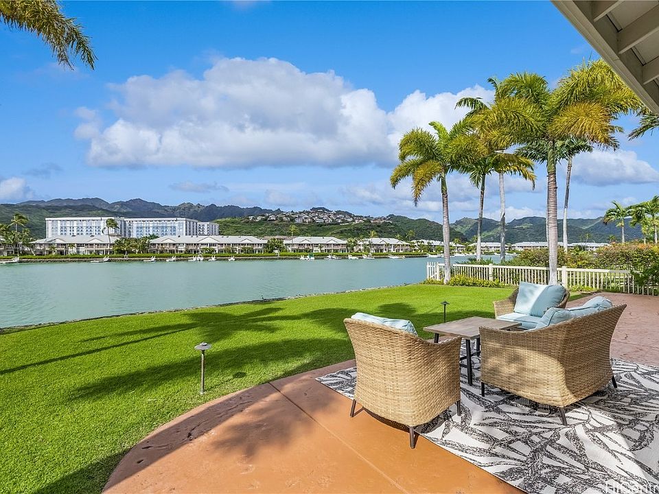 Waterfront living can now be yours in this scarce and valuable 4-bedroom, 3-bath single-family Executive Residence in the beautifully designed, gated Peninsula at Hawaii Kai. New Italian tile floors lead from the elegant entry and formal living room to the spacious open kitchen, dining, and family room with sweeping views of the marina and mountains. Wonderful architectural features include high ceilings and a 1st floor bedroom opening to the marina-front backyard. Upstairs, the extra-large primary suite has windows on three sides, a soaking tub, and a huge walk-in closet. Two garages, a separate laundry room, and a study niche enhance your lifestyle. The property has been meticulously maintained by the original owners as a second home and never rented. Tree-lined streets lead to the landscaped clubhouse area with pool, hot tub, BBQs, fitness and recreation rooms.