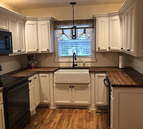 Home has been completely remodeled and updated. This house has been taken down to the studs: new plumbing and septic system, new electrical, tankless water heater, spray foam insulation, refinished oak floors, completely updated kitchen w/ custom cabinets, farmhouse sink, island, and hand made butcher block counter tops, new lighting fixtures throughout, tile flooring in downstairs bath, beautiful locally made walnut front door, extra large covered porch with ceiling fan on over an acre lot.