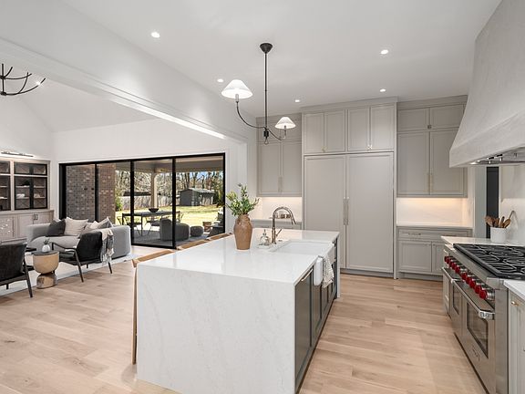 Each space has been tastefully designed to create a cohesive flow that feels warm and welcoming. Entertaining is a breeze with the open layout that includes a prep kitchen and large pantry. Sub-Zero refrigeration and a Wolf gas range provide the quality you expect. The stacking patio doors allow for a fully open feel to the amazing backyard for gorgeous spring days. And, you can cozy up to the stacked stone fireplace to take the chill off of cool evenings while enjoying music from the hidden speakers. The spacious primary suite is highlighted by a luxury double shower, and the stately wood beams create a cozy, natural feel. A second bedroom on the main level provides a comfortable experience for your guests. The two staircases on either side of the home give convenient access to the upstairs bedrooms and large bonus room with wet bar. A second laundry room upstairs means you never have to carry clothes up or down the stairs. 6 total bedrooms ensures everyone has the space they need. Pool can be added for $170,000.