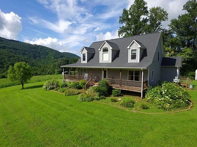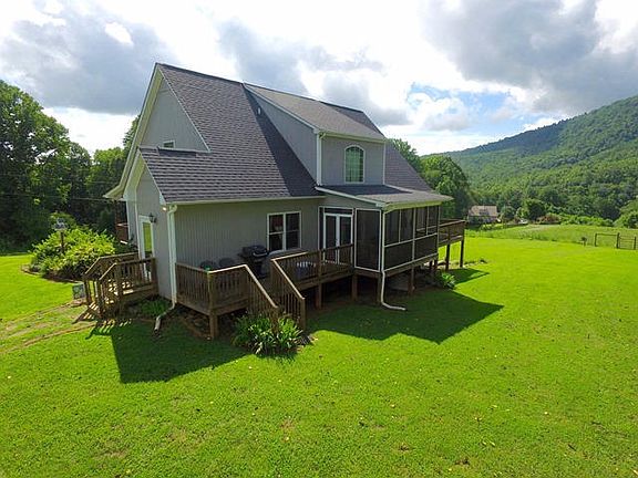 Spacious 4Bed Home w/Wrap-Around Covered Porch, 5 acre Country Setting: Nice Mini-Farm, Mountain View, Barn, Bring Your Horses! Open Floor Plan, Kitchen w/Island Bar, Hardwood Flrs, Main Lvl Master inc Huge Bath: Dbl Sinks, Tile Shower & Clawfoot Tub. Great Room w/High Ceil, Formal Dining, Kitchen w/Cabinets Galore! Full Fin Lower:Rec Rm, Bed4 & Bath. Nice Rural Charm, Convenient to Town Amenities