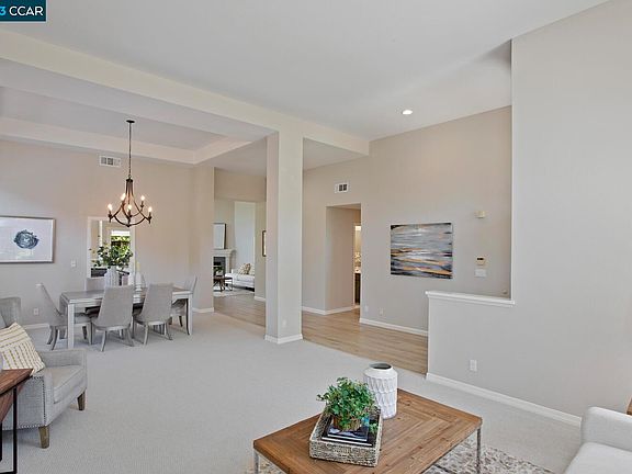 PREPARE TO BE AWED! Hurry to this rare opportunity for exquisite, East-facing single level home in Alta Mira/Gale Ranch on San Ramon/Danville border. Newly renovated, open floorplan with soft-hued, current colors & a comfortable, yet sophisticated vibe! Extensive, wide plank luxury laminate flooring, stylish new carpets, and stunning tile floors help create the mood while dramatic high ceilings and a multitude of windows welcome in natural light. Gorgeous upgraded baths and kitchen. Breath-taking modern kitchen features slab quartz counters & herringbone tile backsplash & rich gray cabinetry with eye catching hardware. Double ovens, gas cook top, wine cooler, built-in frig., desk area. Open to breakfast nook/cozy family room. Sliders from family room/primary bedroom lead to the secluded backyard. Two arbors frame the sliders; landscape walls provide extra seating. Enjoy views of the rolling hills; quaint Japanese-style tea house perfect for storage. Minutes to Tassajara Crossing Shopping Center & Blackhawk Plaza. Very near parks including Red Willow Park and Playground. Convenient to freeways/recreation. Award winning San Ramon Valley Unified School District. No HOA. 3 car garage.
