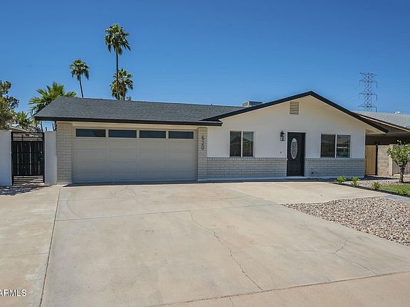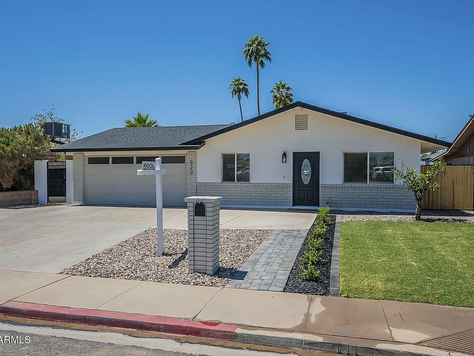Step into this stunningly remodeled 3 bed, 2 bath, 2 car garage with a pool Mesa home where style meets comfort! The brand new front landscaping, fresh exterior paint and new roof gives the home great curb appeal as you pull up to the property. This beautifully updated residence boasts brand new wood-look luxury vinyl plank flooring in the main living areas, creating a warm and modern vibe, while plush carpet adds a cozy touch to each bedroom. The completely remodeled kitchen is a showstopper, featuring white shaker cabinets, sparkling white quartz countertops, new stainless appliances and a custom tiled backsplash that adds a designer flair. The oversized eat-up peninsula offers ample seating—perfect for entertaining or casual family meals. To the left through the kitchen is the laundry room and large storage room. Down the hall from the kitchen are the bedrooms and hall bath. The master suite is at the end of the hallway and it boasts a new vanity sink with white quartz countertop, a beautiful custom tiled shower, walk in closet and new slider door that leads to the back patio. New door hardware, window coverings, ceiling fans, light and plumbing fixtures throughout give the home a modern feel. Outback there is a large patio, freshly laid sod and a sparkling pool, perfect for entertaining. Don't miss out on this move in ready gem!!
