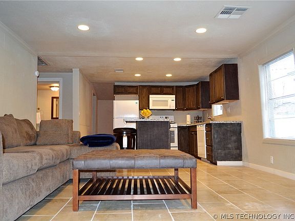 Beautiful REMODEL! 2 miles West of DOWNTOWN Tulsa! Great OPEN floorplan with 3 bd 1 LG bath. Central heat and air. ALL NEW- tile, kitchen, appl. HUGE 2 car detached garage with LRG lot at the end of QUIET street. FURNITURE included w/ acceptable offer!