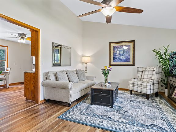 Welcome home to this cozy yet spacious ranch-style home. This home has three bedrooms and three bathrooms. It presents a harmonious blend of comfort, functionality, and style. Situated on a corner lot, this abode welcomes you with its inviting front porch, exuding warmth and charm from the moment you arrive. As you step through the front door, you're greeted by an airy and light-filled living space. Large windows bathe the interior in natural light, while tasteful decor accents add personality and character to the space. The kitchen features granite countertops. While ample counter space and storage cabinets ensure that everything has its place. Retreat to the nice sized master suite featuring a generously sized bedroom with a walk-in closet, and a recently updated en-suite bathroom. Two additional bedrooms, each with their own unique charm, provide comfortable accommodations. With ample closet space and easy access to a hallway full bathroom that has also been recently updated, these rooms offer both comfort and functionality. Convenience is key to a ranch home and this home features washer and dryer hookup on the main level and an attached garage. The basement features a large family room area great for entertaining along with a third bathroom. Outside, the expansive yard offers endless possibilities for outdoor enjoyment and recreation. Whether you're hosting a barbecue on the deck with friends, playing with your pets, or simply enjoying the beauty of nature from the patio, the lush lawn and mature landscaping provide the perfect backdrop for outdoor activities.