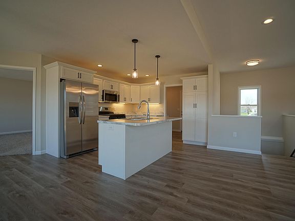 Welcome to the Eastfield subdivision. An in the country feel with city water, city sewer, trash pickup, Fiber Internet and a convenient location on the northeast side of Milford. Check out all of the details at Eastfieldsubdivision.com. This home features: 3 bedrooms, 2 bathrooms, 2+ car attached garage with a full unfinished daylight basement designed for a future bedroom, bathroom, family room & utility/storage room. The covered front porch brings you into a foyer that leads you to an open floor plan starting with a large living room that's connected to the fully appointed kitchen complete with a kitchen island/breakfast bar, plenty of storage, countertop space, and a pantry. The laundry room/mudroom with pantry/closet area and utility sink connects the 2+ car attached garage to the kitchen. Dining room is off the kitchen as well with a slider door access to the deck overlooking the large backyard. Generous sized primary bedroom suite includes double sink vanity, walk-in shower and walk-in closet. The split bedroom floor plan features an additional 2 bedrooms and another full bathroom that completes the main level. From the wide stairway from the living room you'll find the full basement ready for your finishing touches. Outside you'll find a maintenance free exterior with vinyl siding, front stone accents, black exterior Anderson vinyl windows, and lawn irrigation system. ASK US ABOUT BUYER CREDITS that may be available to you if you use our partnered lender for financing. Miller Brothers Builders / Journey Homes and Stockton Mortgage Corporation are not affiliated entities. Borrowers are free to select their own service providers. Credits provided for qualified borrowers by Stockton Mortgage Corporation, NMLS 8259.
