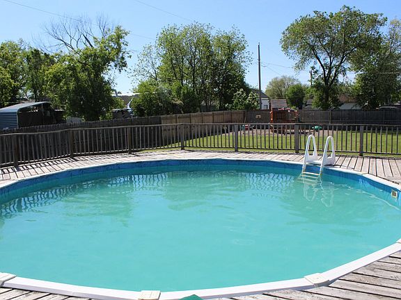 Gather around the pool and start enjoying the Summer heat! This 4 bedroom, 2 bathroom home is located on a large corner lot and offers a spacious floor plan! Features include: an updated kitchen with ceramic tile and breakfast bar; formal dining room with hardwood flooring; large living room leading to bonus room that is currently used as an office; 30x35 deck with above ground pool; main floor laundry; newer furnace and plumbing.