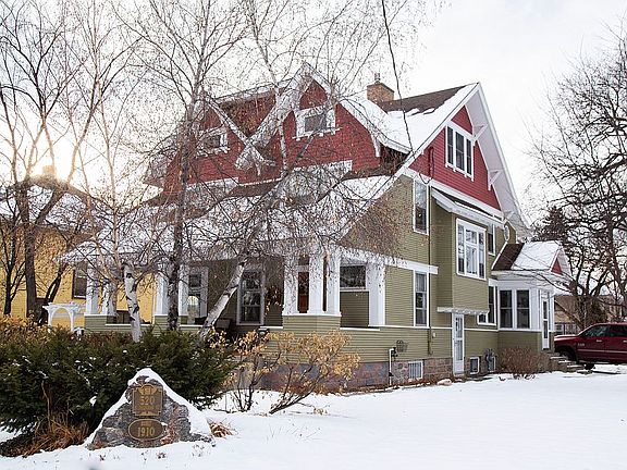 Back on Market: $439,900 Own a piece of Bismarck history in the exclusive Cathedral Historical District. Built in 1910, this home features three stories above grade plus an unfinished basement for abundant storage. The home has five bedrooms/three baths and is situated on a large corner lot. The main floor boasts a large living room/dining room and kitchen with stained glass windows, quarter sawn oak wood trim and built-ins and an updated kitchen on the main floor. The second has four large bedrooms with walk-in closets and an updated bathroom with shower and claw foot tub. The third floor is a large master suite that is currently being used as home theater. Mechanically the home also has a high efficiency boiler for heat and three split units for cooling. The inviting front porch underwent major renovations in 2019. In the circular driveway you will also find one single attached garage as well as a large detached two stall garage. Call or text 701-426-0911 or 701-220-1568 to view this wonderful piece of history.