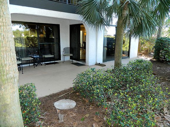 END UNIT! Extra large Ground Floor Golf Villa at popular Edgewater situated on Hole 5. Updated in 2018 with new paint, TVs, Refrigerator. Brand new dishwasher. Tile throughout, upgraded bathrooms. Beautifully furnished! The BEST patio: private, shaded, oversized, covered! Very nice Master Bedroom with bathroom, walk-in closet. Villa is steps to a Heated Pool and beachfront amenities are a short walk or tram ride away. Pools, Hot Tubs, Sun Decks, Beach Access. Restaurant, Room Service, Poolside Bar. Market serves Starbucks and Ice Cream. Everyone loves the Pizza Shop. Kids Club features Special Events, Splash Pad, Activities Calendar. At The Club: unlimited Golf, Basketball, Tennis, Shuffleboard. Fitness Center, Salon and Spa Services. Gated Entrances, 24-hr Security. Owner Pets welcome!
