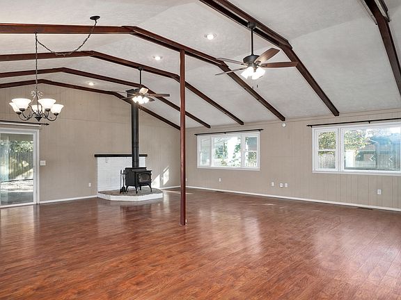 Wait until you see this charming 3 bedroom home with tons of character. Step into the open floor plan with a massive living room which flows into the kitchen, including vaulted ceiling with wood beams. This home has great features such as wood burning stove, attached garage which will easily fit 3 full sized vehicles, or perhaps a truck and trailer in the garage. Massive covered back porch, storage shed, long driveway, and so much! This one is sure to go quick!