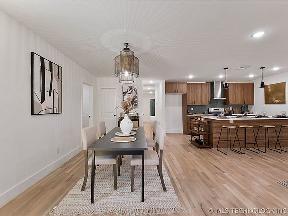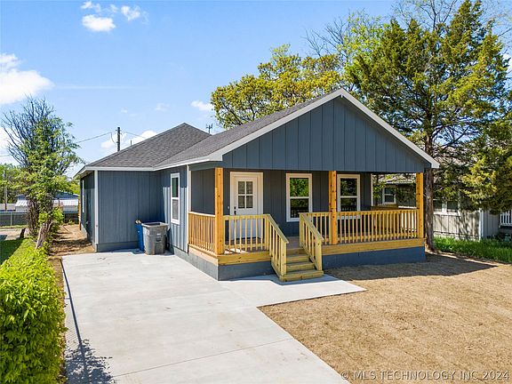 Step into this charming, remodeled bungalow where warm natural colors envelope you in every corner. Earthy green tile, real oak hardwood floors and rich wood cabinets giving you a cozy but modern feel. Completely remodeled from top to bottom, quartz countertops, stainless steel appliances, all new designer lighting, new HVAC, plumbing, electrical, and roof! This gorgeous home is move-in ready! Large covered front porch with car siding and a backyard deck off the primary suite and lots of new concrete for plenty of off-street parking. Located in the heart of historic Owen Park, close to highway access and downtown Tulsa!
