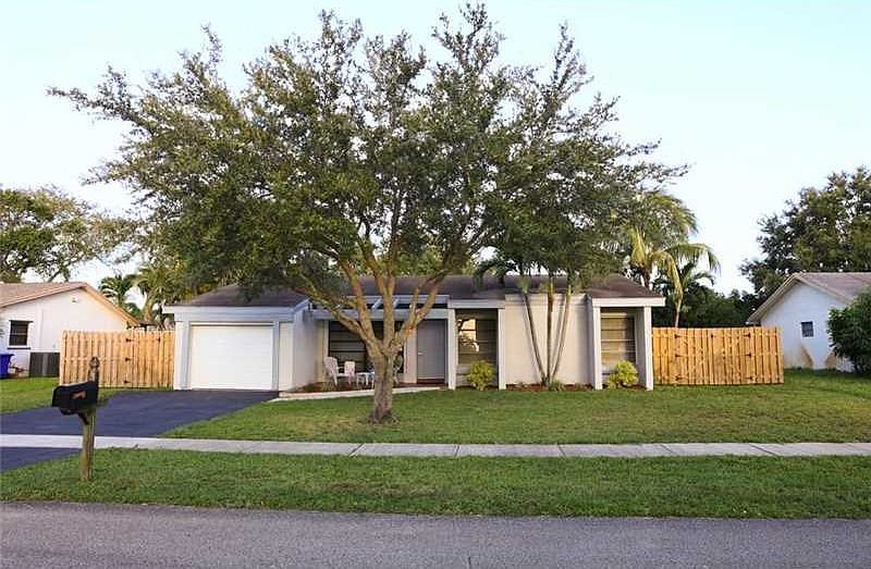 You will love this great starter home in Pembroke Pines with No Homeowners Association!, beautiful 3 bedrooms 2 baths, lots of natural light, freshly painted in and out. laminate wood flooring and tile throughout the house. 1 car garage with new garage door and electric opener, on a large fenced lot with room for a swimming pool, covered back porch, playground, eat-in kitchen, newer air conditioning dishwasher and dryer, bathrooms recently updated, close to shopping area, schools, highways and much more!!