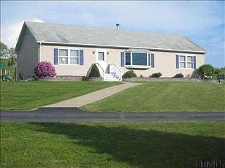 Come look at this spectacular Ranch home which has a large private lot with a magnificent view. This home offers a eat-in kitchen, numerous sliding glass doors leading to the large rear deck. The back yard offers a large shed, wooden swing set, large above ground pool and fireplace. The master bedroom has a full bath which has been beautifully tiled including a heated tiled floor, large standup shower with a thick glass door, makeup mirror and vanity. The basement incl a FR/bar