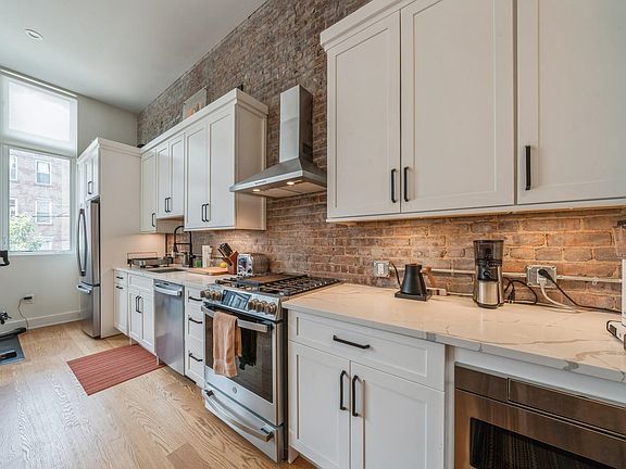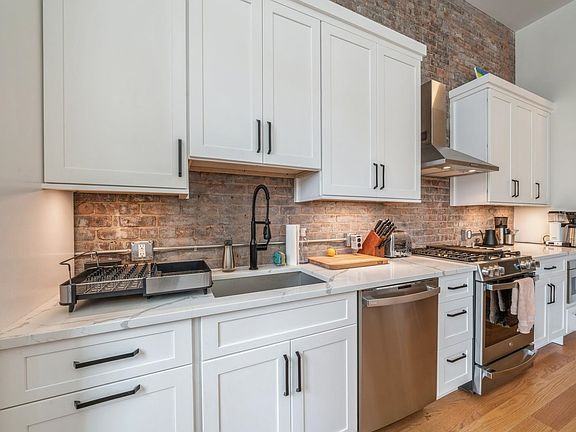 Unit 405 at the Palisade Firehouse showcases a thoughtful design that seamlessly combines elegance with practical functionality. It boasts hardwood floors, high-end stainless steel appliances, white quartz countertops, custom cabinetry, and a large washer/dryer for your convenience. The Palisade Firehouse elevates luxury living with its gym, bike storage, and an impressive rooftop deck, complete with an outdoor kitchen and stunning NYC views. This stylish studio apartment is located in the heart of Jersey City Heights, offering easy access to the area's best attractions. Enjoy seamless connectivity with Riverview Park steps away and a 15-minute walk to the Second Street Light Rail Station. Nearby, you'll find Pershing Field Park, featuring a public pool, ice skating rink, and baseball field. Pictures are of a similar unit in the building.