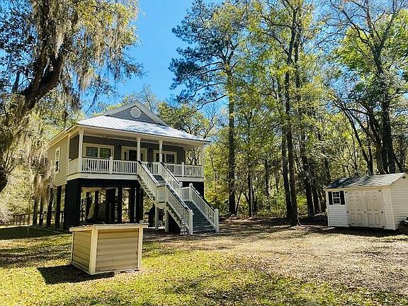 Best buy on new single family home close to beach and deepwater landing. Enjoy the best of all worlds in the secluded coastal cottage nestled among live oaks in restricted area. Enjoy rocking on your covered lowcountry porch with gentle sea breezes. This home features 2 bedrooms, 2 baths, hardwood floors in living area, all kitchen appliances, underneath parking for all your cars, boats, and great area for entertaining friends with lowcountry shrimp boils and oyster roasts. Spacious yard for gardening and bird watching. Perfect permanent home or secondary get-away retreat. Furnishings negotiable. Don't let this one slip away!